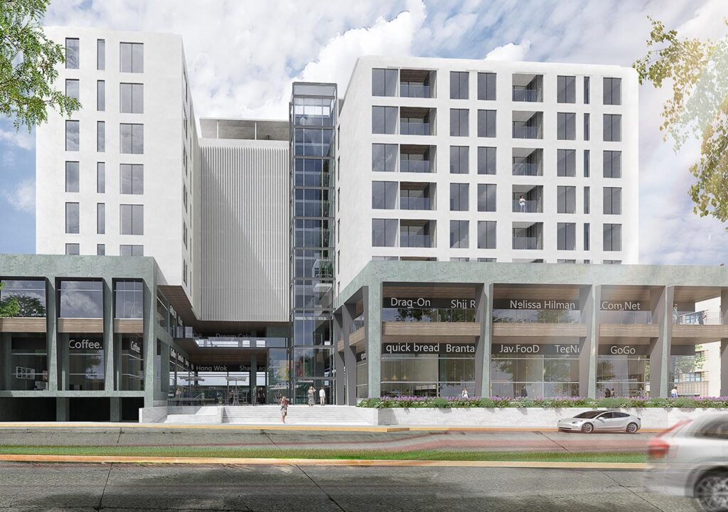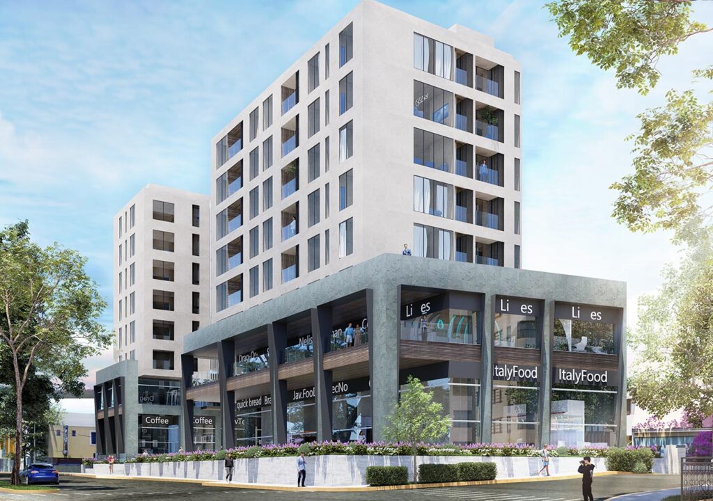 Este gran proyecto está conformado por 72 departamentos distribuidos en seis pisos y dos pisos más en la parte inferior, para área comercial.