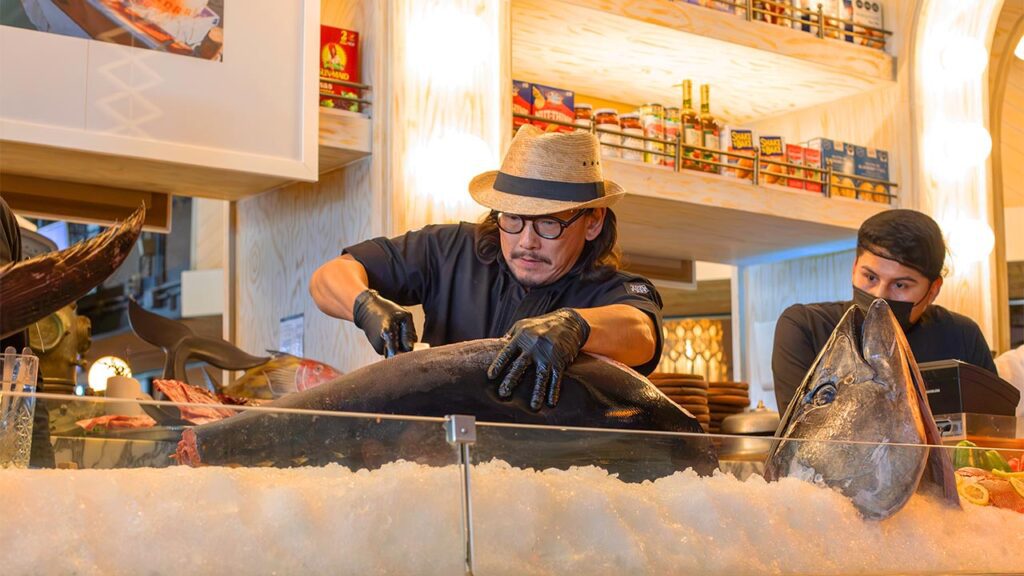 En Campomar, el ronqueo de atún se convierte en una experiencia que celebra la técnica, el producto y la cocina. Los asistentes viven de cerca el proceso de despiece del atún, guiado por el chef, mientras disfrutan de una selección de platillos especiales preparados al momento, donde cada corte destaca por su frescura y calidad. Una experiencia que combina tradición, precisión y el ambiente característico de Campomar. ¡Espera los próximos ronqueos, cada mes en Campomar!