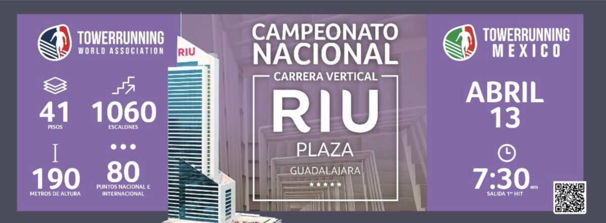 El Tower Running es una modalidad atlética que consiste en subir edificios por escaleras en el menor tiempo posible. En esta edición, el RIU Plaza Guadalajara será el escenario para los mejores corredores verticales del país, quienes buscarán obtener 80 puntos para el ranking nacional e internacional.