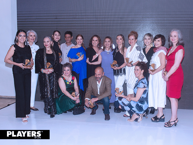 Caro Castelán, Elena e Isabel Moncada, de Cuata Jewelry; Cristina Fernández, Felipe Cárdenas, Isela Robles, Karen Marrun, Lilo Palma, Mariana Barranco, María Paula Amezcua, Alejandro Rodríguez, de Metamorfeame .925; Regina Castillo, Rocío Mereles, Sofía Berlanga, de Morena Corazón; Sylvia Burgoa, Tania Maruca y Ángeles Loaiza, de Trimori, fueron los 18 diseñadores que recibieron su reconocimiento por las joyas que, realizadas en diferentes materiales, como metales y piedras preciosas, hasta pet, plásticos y conchas, hacían alusión al océano.