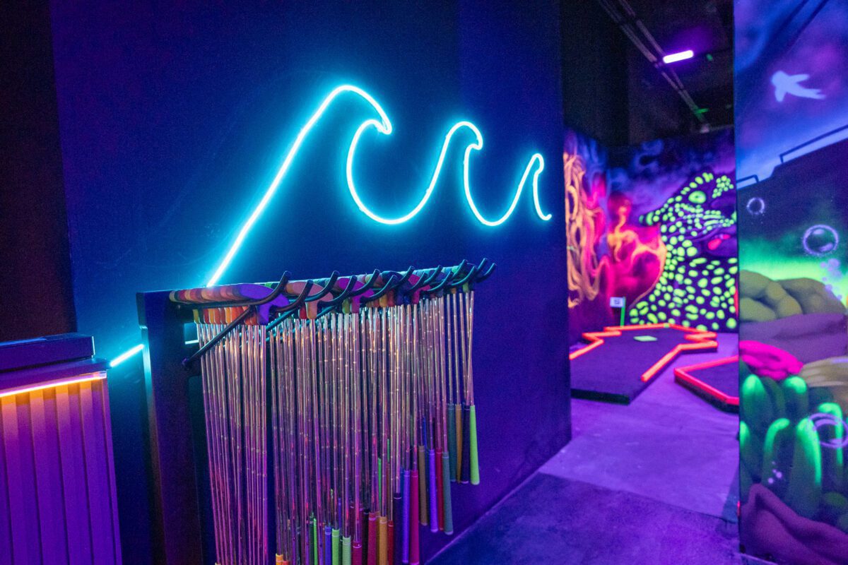 Es perfecto para quienes desean explorar el deporte de golf de una forma divertida y totalmente auténtica con su decoración inmersiva en detalles neón que comenzó operaciones el pasado 16 de diciembre.