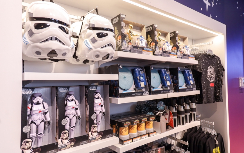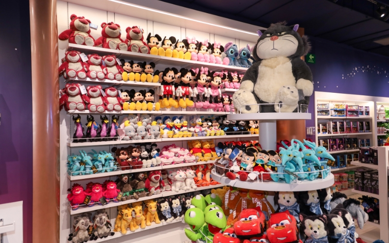 Al recorrer el establecimiento, descubrimos rincones interactivos fascinantes, como el área dedicada a Monsters INC. Las góndolas del lugar exhiben peluches de los clásicos más entrañables y las colecciones completas de Pixar, Marvel, Star Wars.