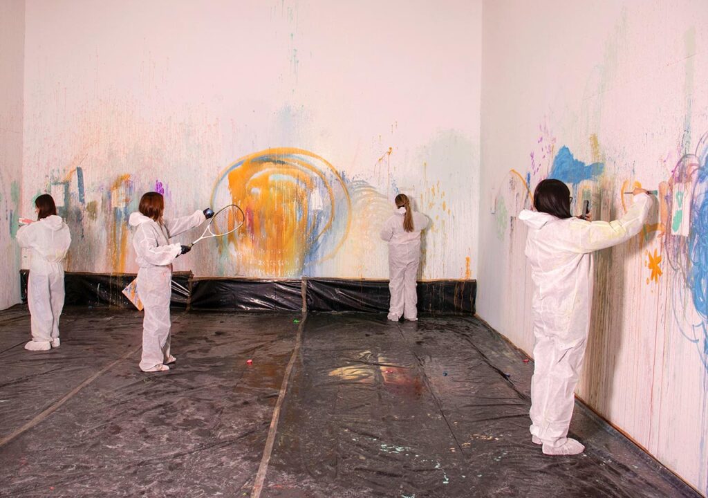 En Artea no existen líneas rectas ni lienzos pulcros. Aquí se pintan paredes, se lanzan globos, se ensucia uno sin culpa. Romper con la idea tradicional del arte era parte del manifiesto.