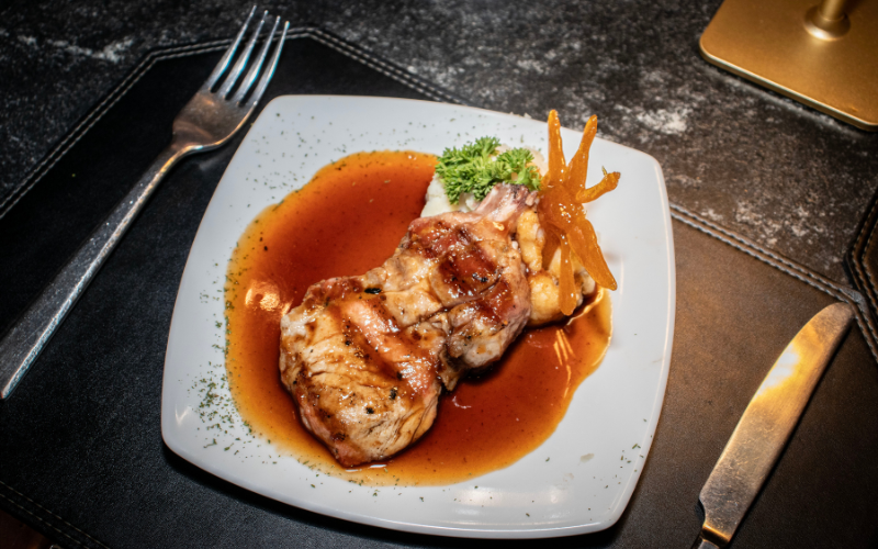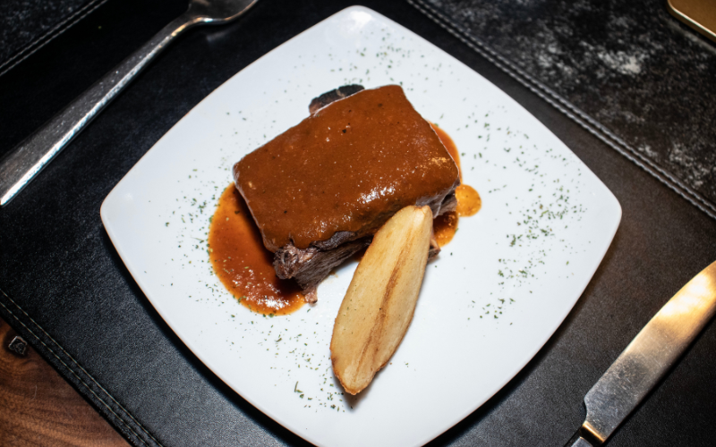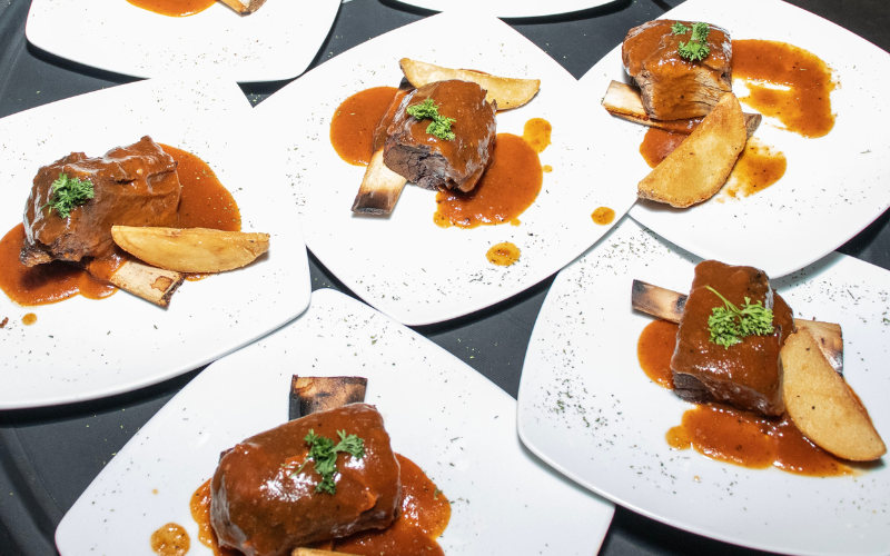 El segundo tiempo presentó la costilla cargada Don Leo Mochomos, mientras que el tercer tiempo estuvo compuesto por rib eye de puerco Yayan, maridado con un ensamble de Cabernet Sauvignon y Syrah. Cada servicio fue explicado de forma puntual, permitiendo a los asistentes identificar características del vino y su relación con el platillo, sin discursos extensos ni tecnicismos innecesarios.