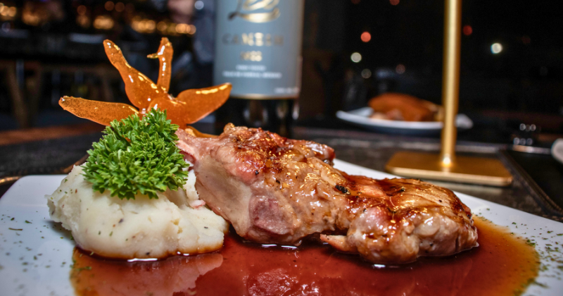 El segundo tiempo presentó la costilla cargada Don Leo Mochomos, mientras que el tercer tiempo estuvo compuesto por rib eye de puerco Yayan, maridado con un ensamble de Cabernet Sauvignon y Syrah. Cada servicio fue explicado de forma puntual, permitiendo a los asistentes identificar características del vino y su relación con el platillo, sin discursos extensos ni tecnicismos innecesarios.