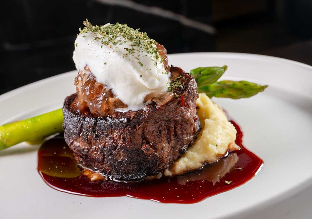Especiales por temporada: Filete trufado, un filete con una mantequilla de trufa, trufa fresca rallada, un puré de papa, zanahorias y coles de bruselas.